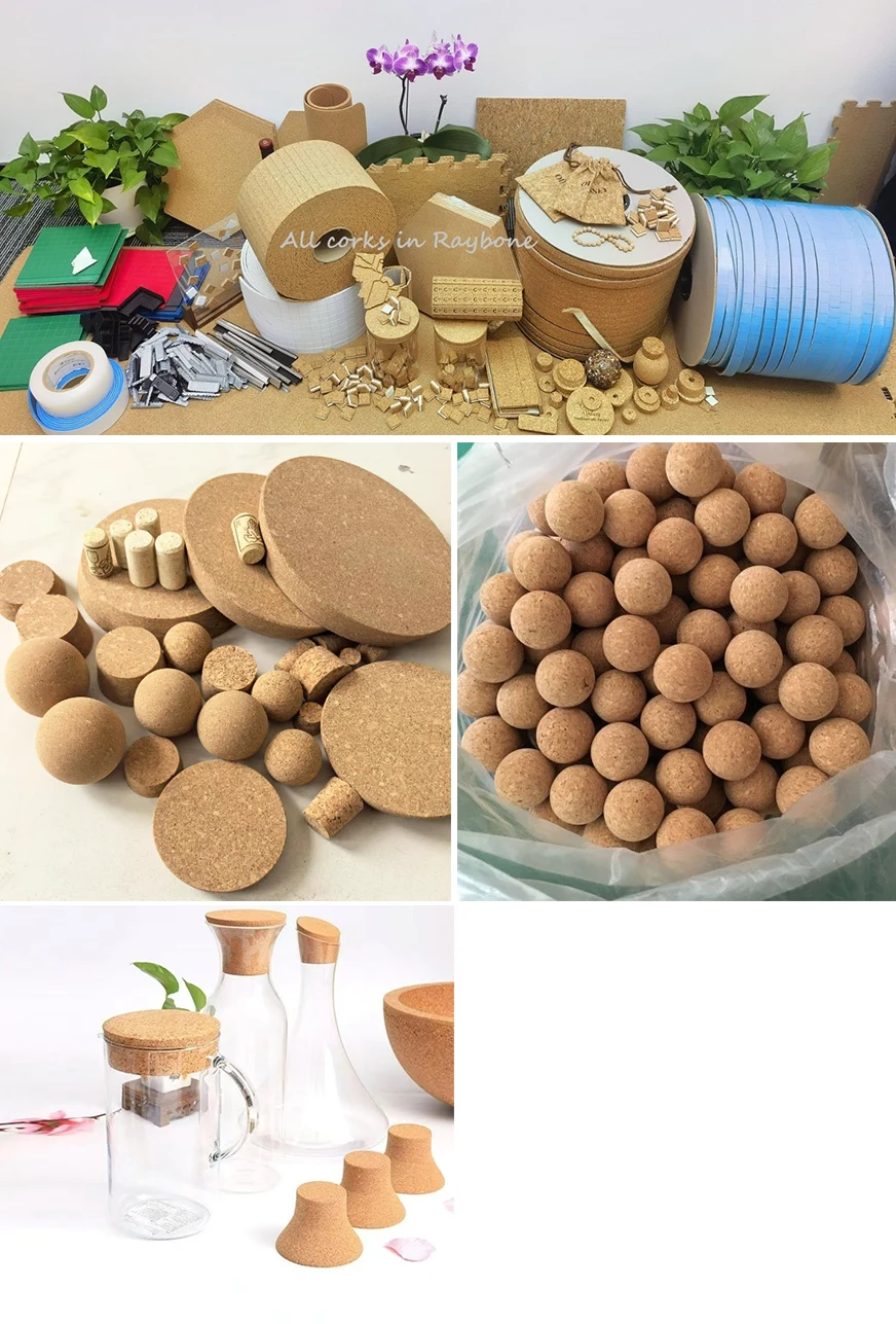 कर्क प्लग Raybone को मुख्य उत्पादन हो, बोर्ड र रोलरहरू बनाउनको लागि कर्क र इको-मैत्री ग्लुले बनेको छ र सजिलै र सहज रूपमा टेपर्ड कर्क स्टपर्स, बेलनाकार स्टपरहरूमा आकार दिन्छ। कर्क स्टपरको घनत्व कम छ, हल्का तौल छ, र टिकाउ र पुन: प्रयोग गर्न मिल्ने छ। यसको सानो आकार र कम मूल्यको बावजुद, यसले हाम्रो दैनिक जीवनमा अत्यधिक लागत-प्रभावी भूमिका खेल्छ, जस्तै पेय उद्योग, घर सजावट उद्योग, भान्साका भाँडाहरू, र यस्तै अन्यमा।